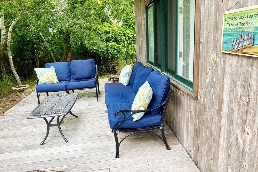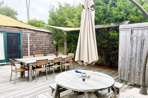 This special home is available for two week rental periods at variable times during the summer season. There are 3 structures situated on a sprawling deck. There is easy access to the beach and the bay.