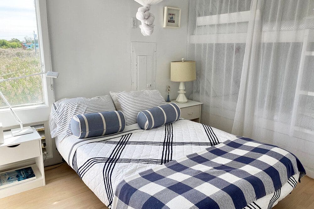 The primary bedroom has a king-sized bed. Another has a queen and a third has both a full-sized bed and a bunk bed. The fourth bedroom alternates as a den and has a charming day bed and satellite TV.