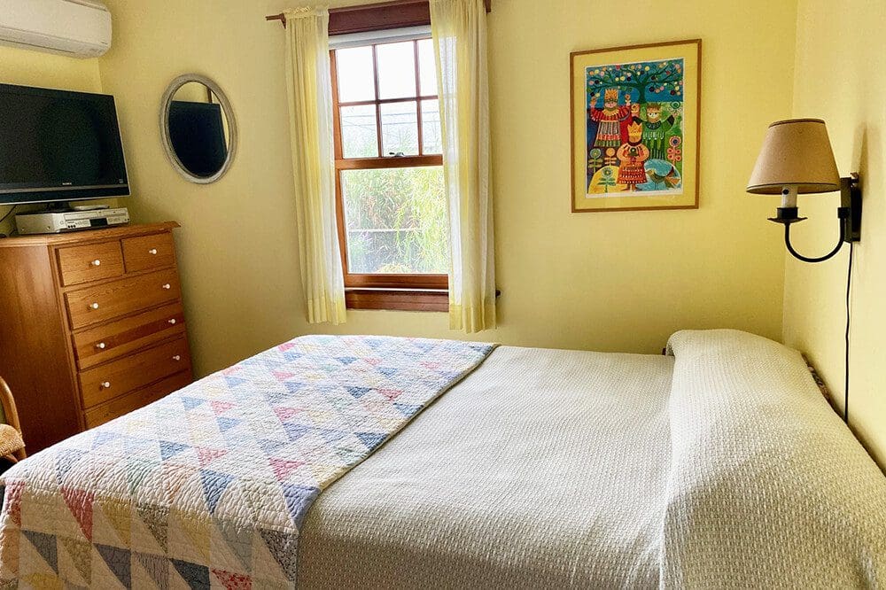 There is a separate dining room and two living rooms. The white wicker upstairs living room opens to stunning views of the Clam Pond and the Great South Bay. Air- conditioned bedroom configurations: (1) a bunk with full bottom, (2) queen with en suite bath, and (3) a queen with en suite powder room. Both full baths have tub and shower.