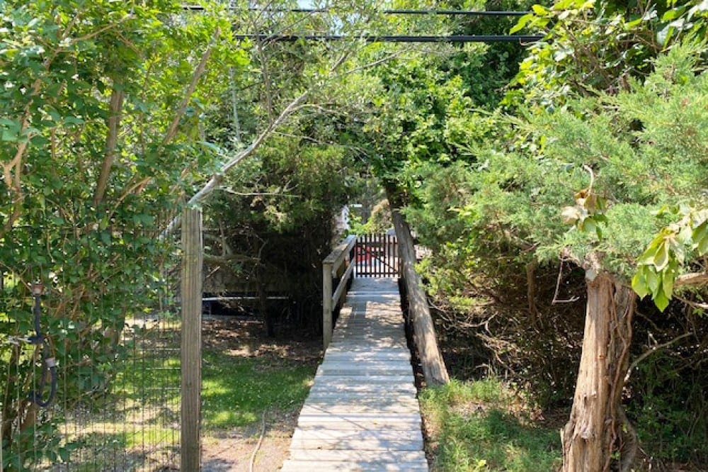 This sweet two bedroom cottage has a front screened porch for dining and north deck for grilling and lounging. The main entrance and deck are alongside a vacant lot, which allows for maximum privacy. A back walk goes to Bayberry Walk in Fair Harbor, which leads directly to the ocean and provides easy beach access.