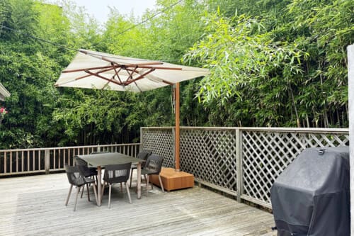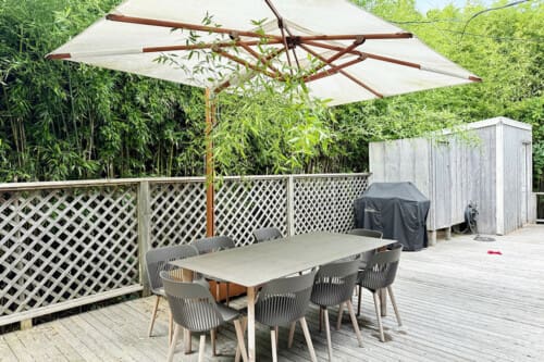 The house has been been lovingly upgraded and the expansive decking is comfortable and private. Designer furnishings add to the feeling of graciousness and will remain in the house. The laundry shed and well-proportioned outdoor shower on the back deck are easily accessible via a walkway running alongside the house.