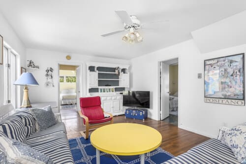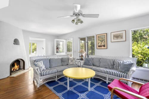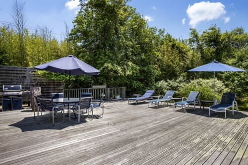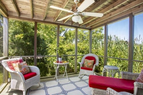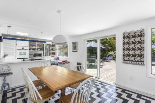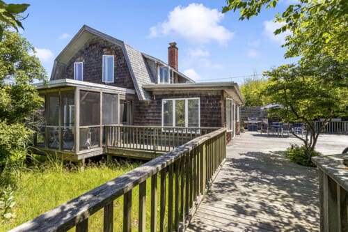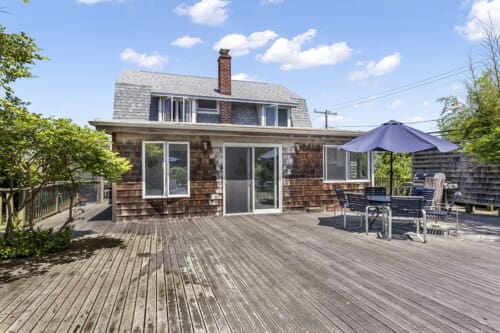 Enjoy your summer holiday in this delightful spacious five-bedroom home. The house is traditional with the living areas, two bedrooms and two baths at entrance level. The eat-in chef’s kitchen is huge with a seating area that allows guests and family to share in meal preparation and lively conversation. Screened seating off of the living room provides an additional cozy space to read, to gossip and to dream.