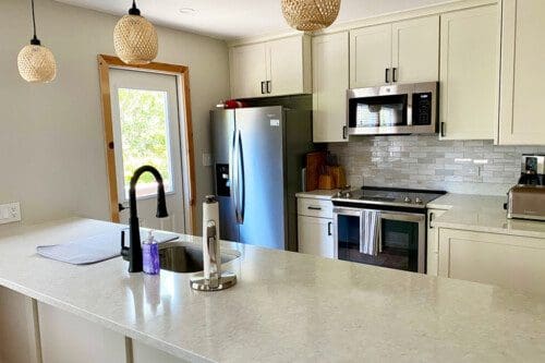 Two of the bedrooms have twin (2 single) beds; one has a queen and the other a king. The kitchen has been renovated and the ambience is beach-perfect.
