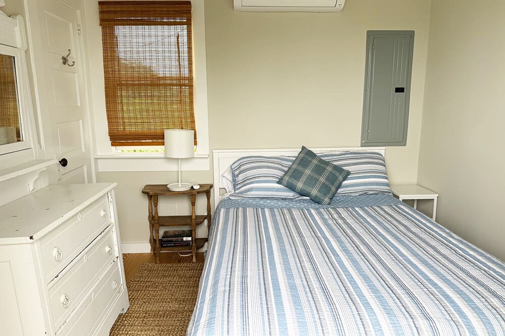 The traditional house is open with updated kitchen and living spaces. There is a separate enclosed front porch with TV. There are 4 bedrooms 1.5 baths in the main house. Of the 4 upstairs bedrooms, one has king-sized bed; another has a full-sized bed. Two bedrooms have bunk beds and one has both a bunk and a single bed. There are ceiling fans throughout the home. A guesthouse with full-sized bed and powder room is a bonus.